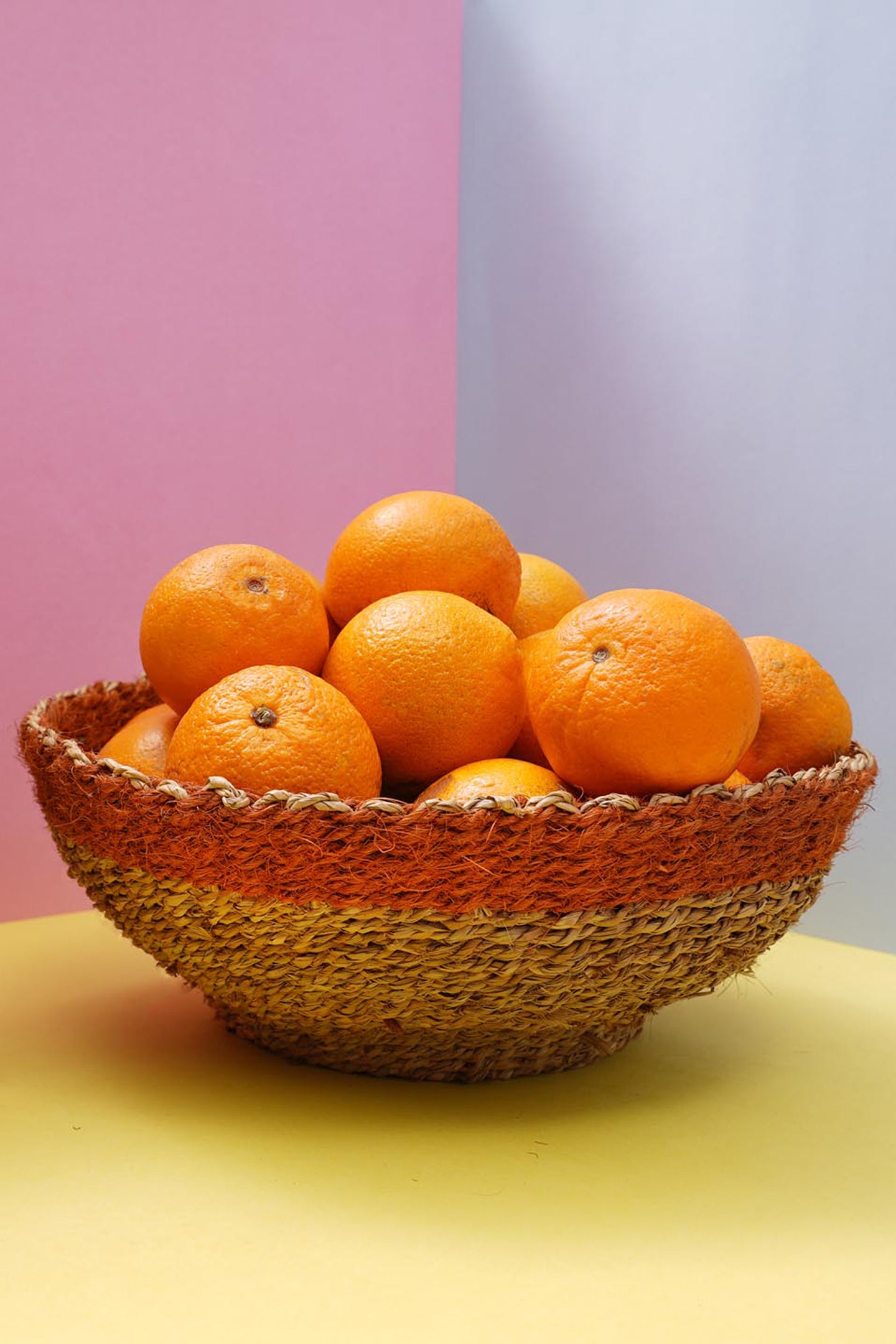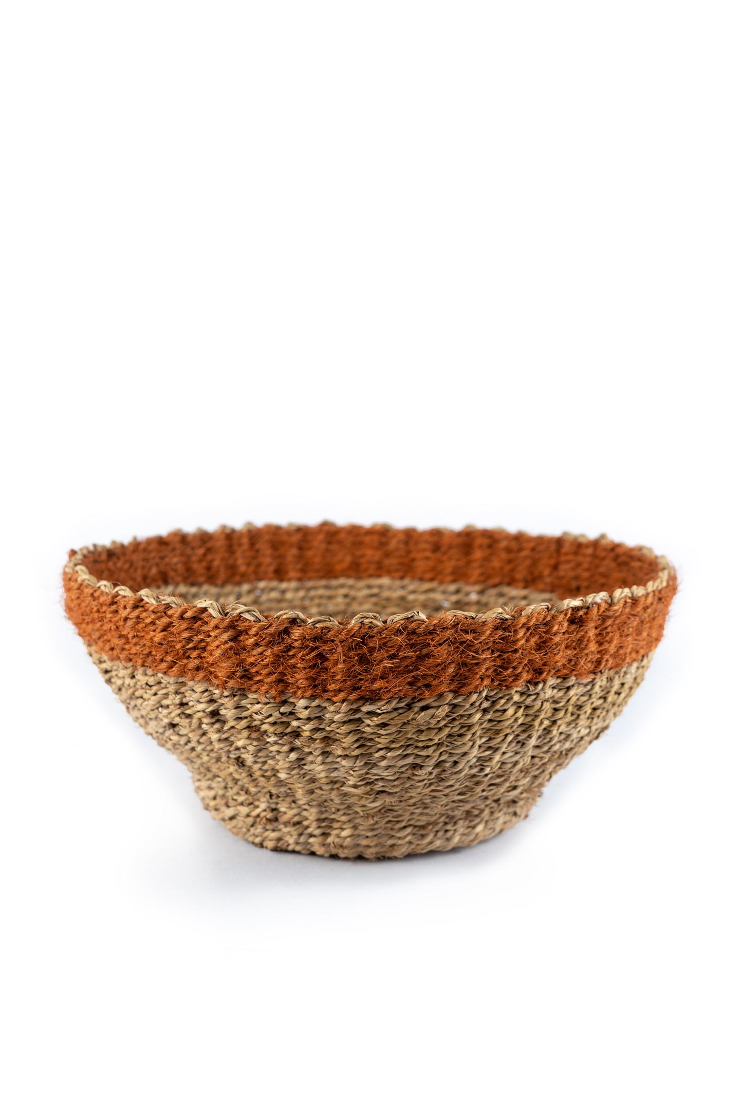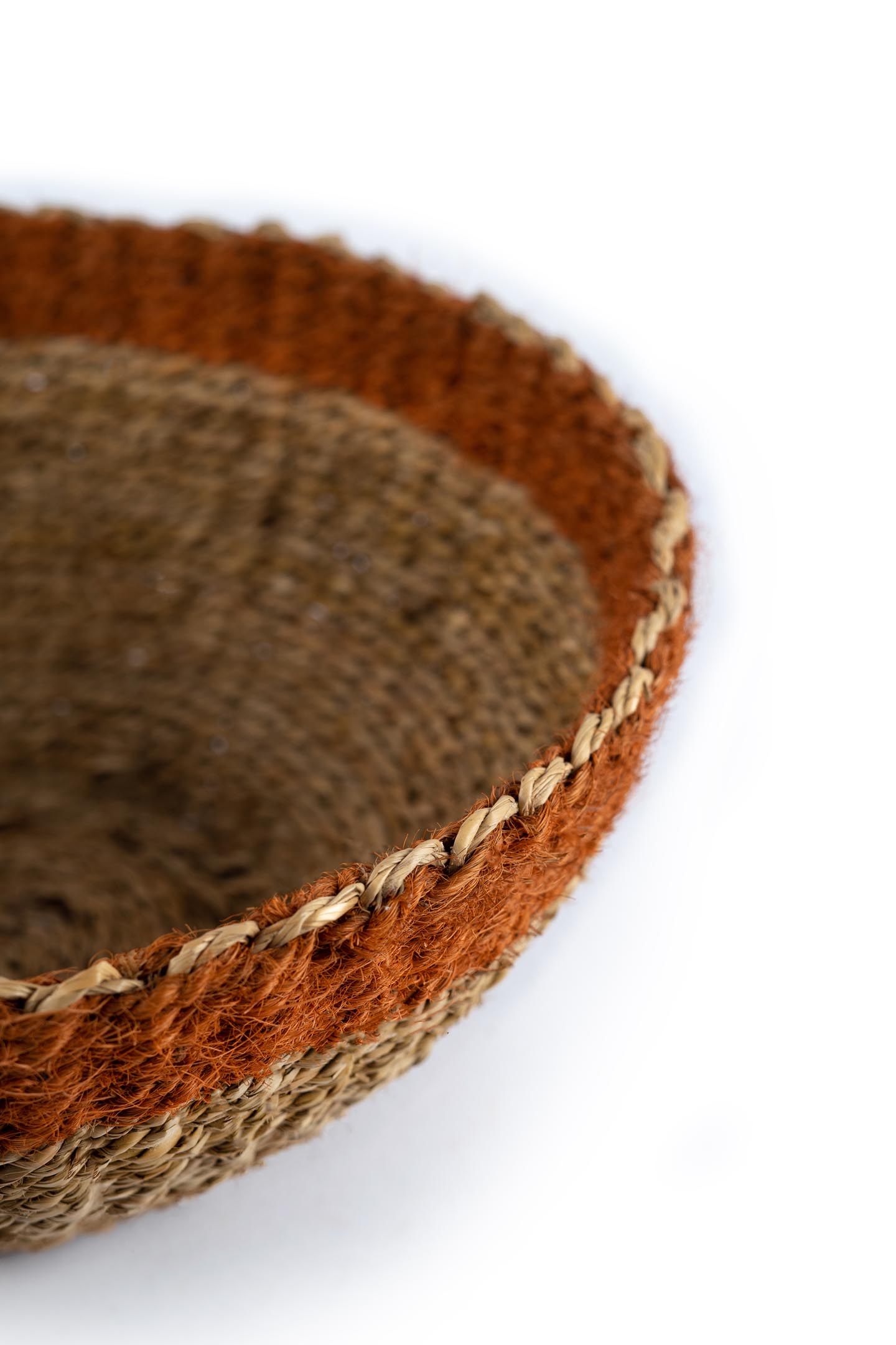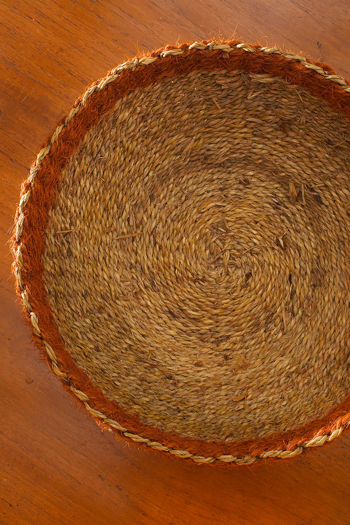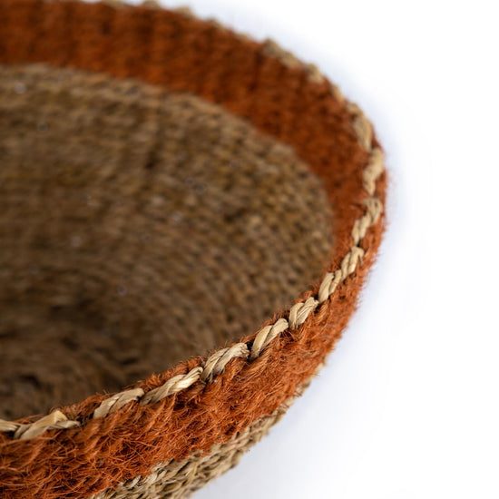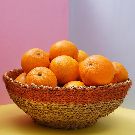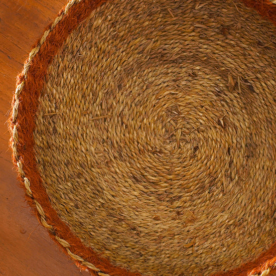 In Kerala, the land of coconut trees, we find a way to create utility from every part of that tree. For decades, making coir by processing coconut fibre has been a source of livelihood for a significant share of the population in this region. Coconut fibre is processed into strands and these strands are twisted together to form coir. Later coir is dyed with beautiful colours. Our artisans in Alleppey district of Kerala use this coir to make baskets. A basket completely made of natural materials, symbolising the spirit of Kerala.