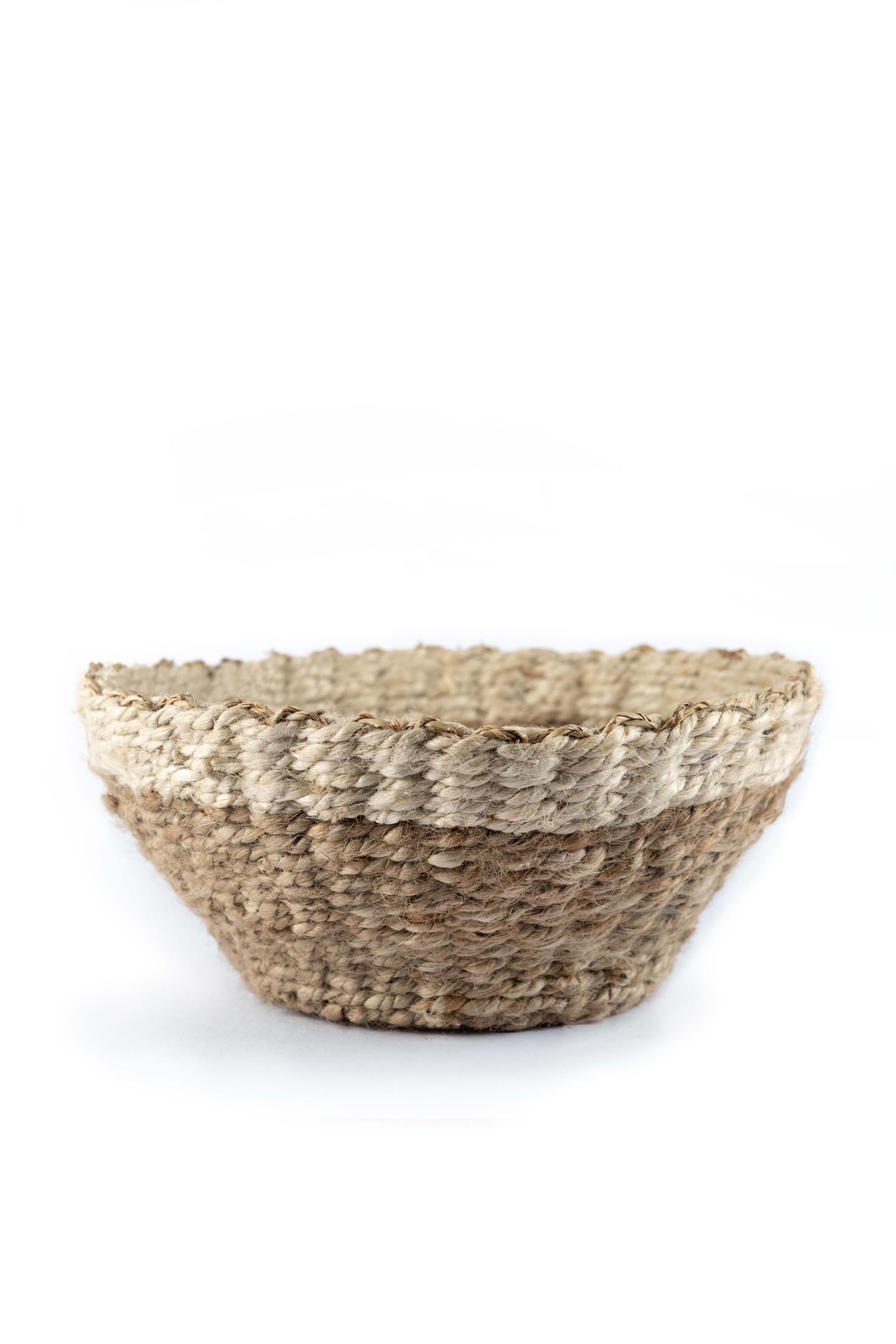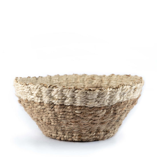 Created from Kora grass and jute these basket are ideal to function as fruit basket and planters. Here is a piece crafted by our artisans from Kerala.