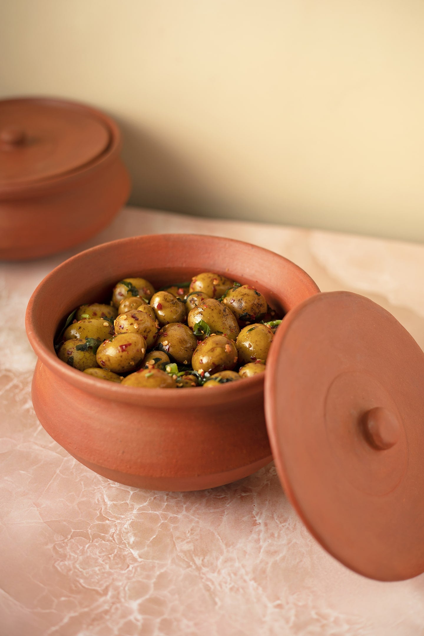 Chatti Curry Pot - 1.2 L capacity flat bottom serve ware with a lid, keeps your dish warm and goes well on your table