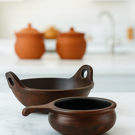 Two Kitchenware together for your healthy cooking. Long handle Cookware (Vaalchatti) - 1 litre capacity and Cookware with two side handles (Cheenachatti) - 1.2 litre capacity