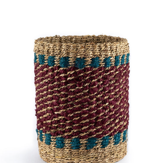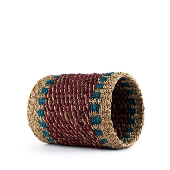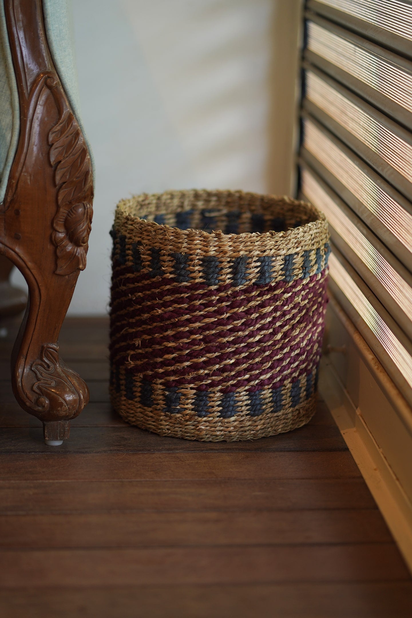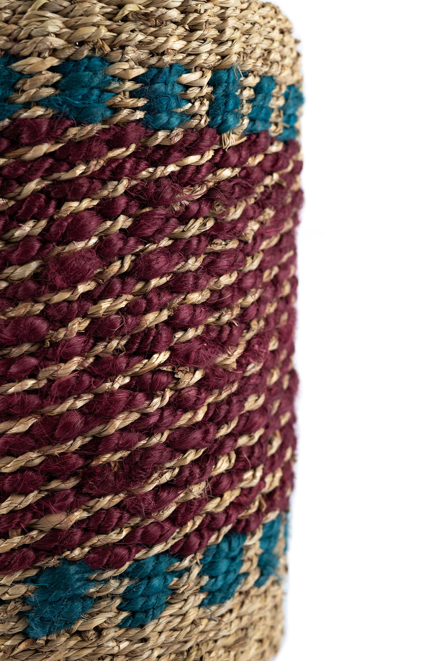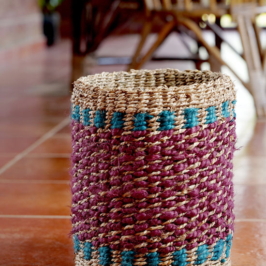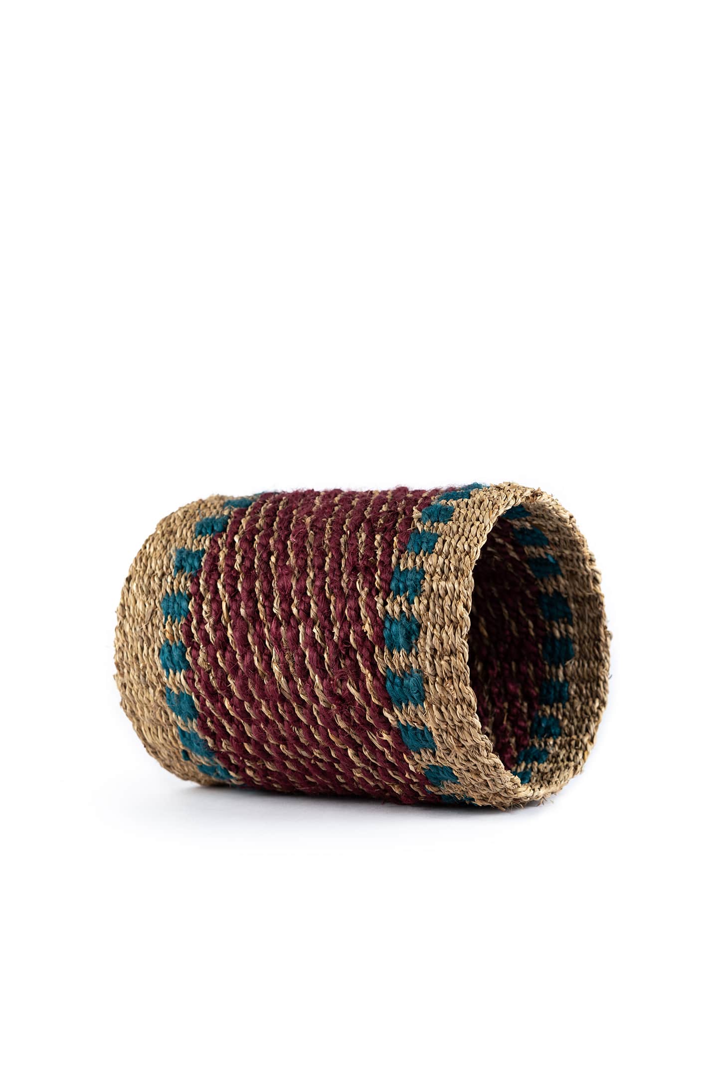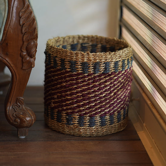 In Kerala, the land of coconut trees, we find a way to create utility from every part of that tree. For decades, making coir by processing coconut fibre has been a source of livelihood for a significant share of the population in this region. Coconut fibre is processed into strands that are twisted together to form coir. Later coir is dyed with beautiful colours. Our artisans in Alleppey district of Kerala use this coir to make baskets. A basket completely made of natural materials, symbolising the spirit of Kerala.