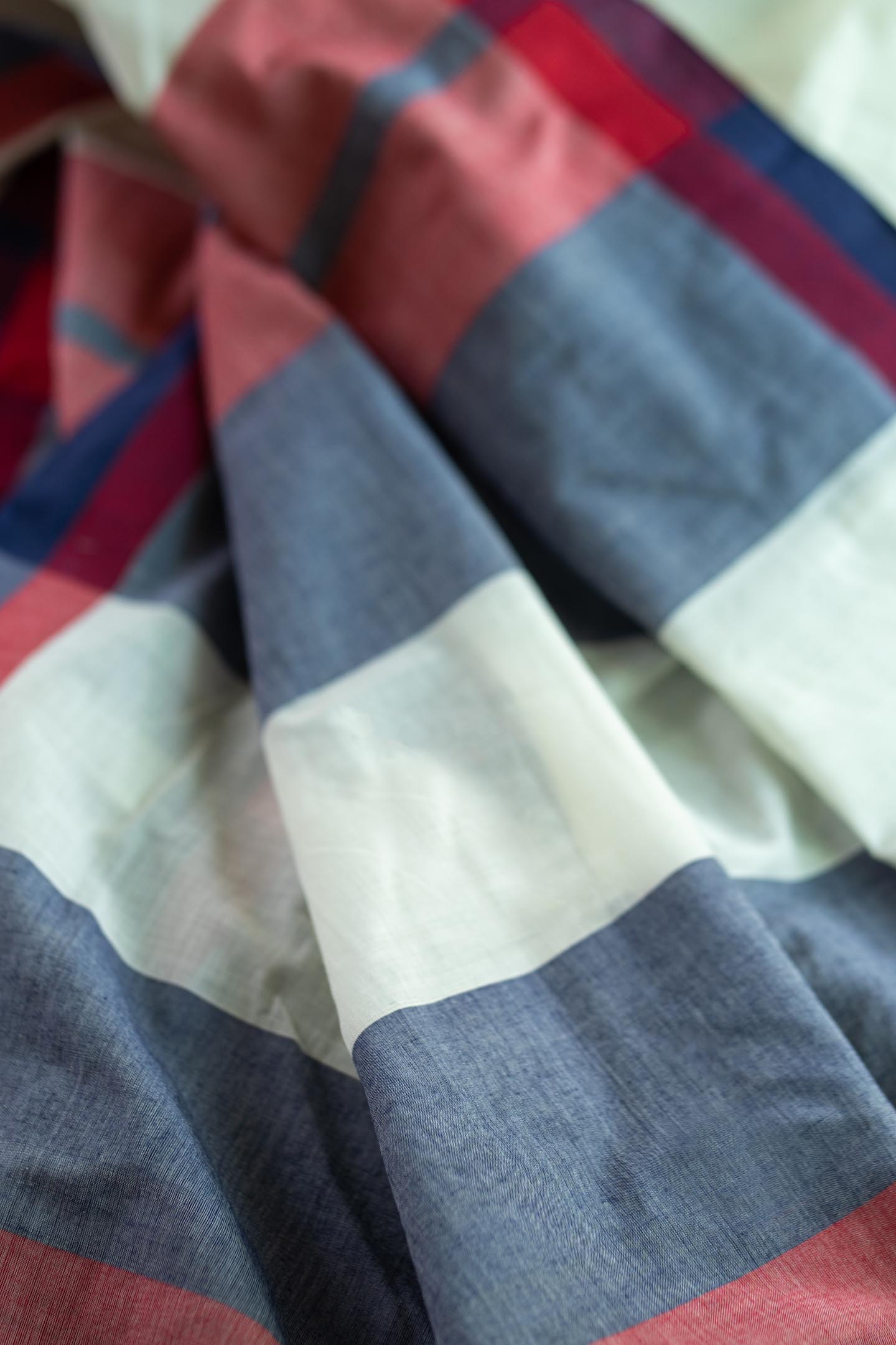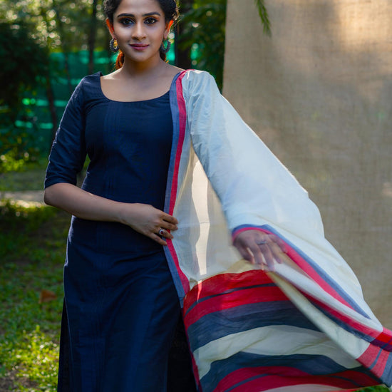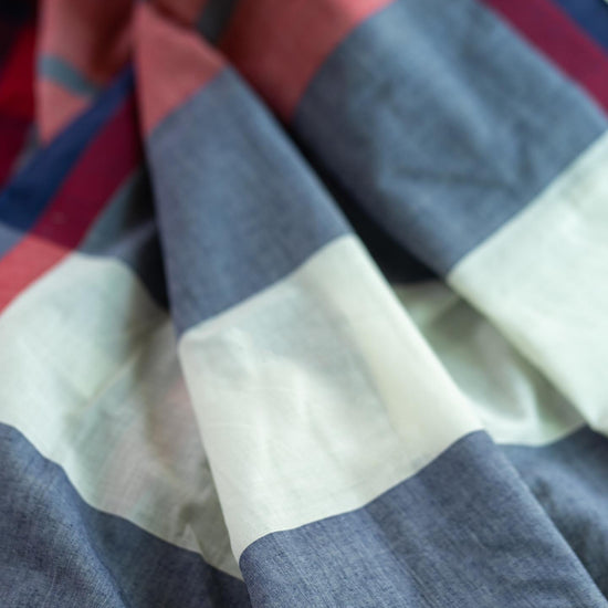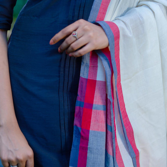 Story of Weaving: The handloom fabric is a type of fabric that is woven using hand operated looms. Two sets of interlacing yarns, the warp (length) and weft (width), are woven on a loom hand-operated by weavers. These looms do not use electricity. Human handling lends the fabrics a unique feel and renders the fabrics more value. The resultant fabric is softer, more durable and much more comfortable than machine-made fabrics. Handloom cotton is more breathable and thus feels lighter in summers and provides more insulation in winters. The dyeing process also becomes easier for handloom cotton as the colour penetration is substantially more. Hues are absorbed better thus look resplendent on handloom cotton. The art of hand weaving is labour intensive and takes a longer time. But, the beauty it adds to the fabric is priceless. Choosing handloom cotton supports the rich weaving heritage of India and lets the weavers carry on the precious art-form to the future generations as well.