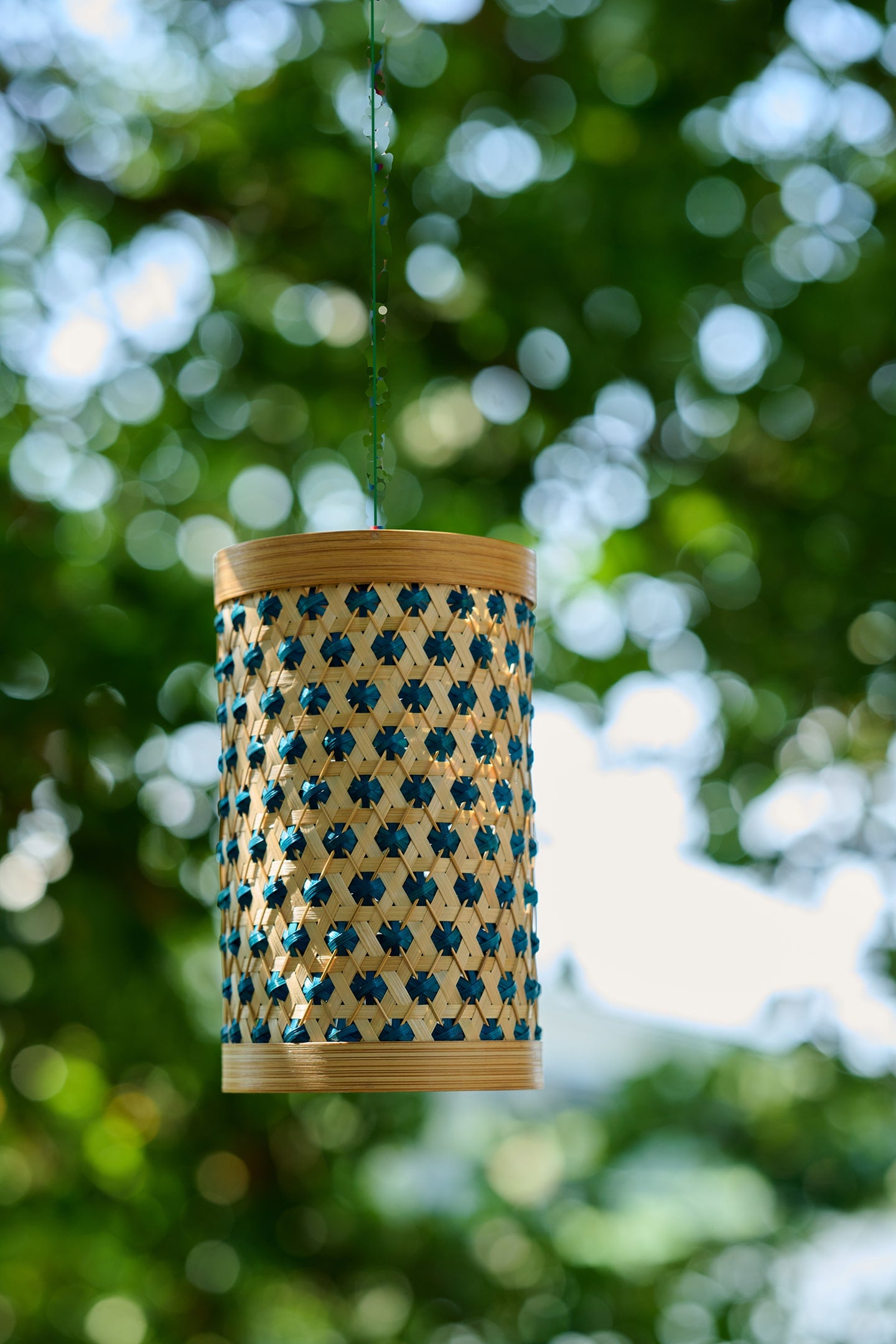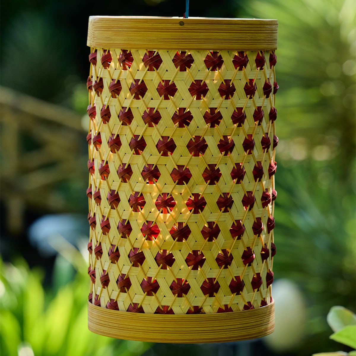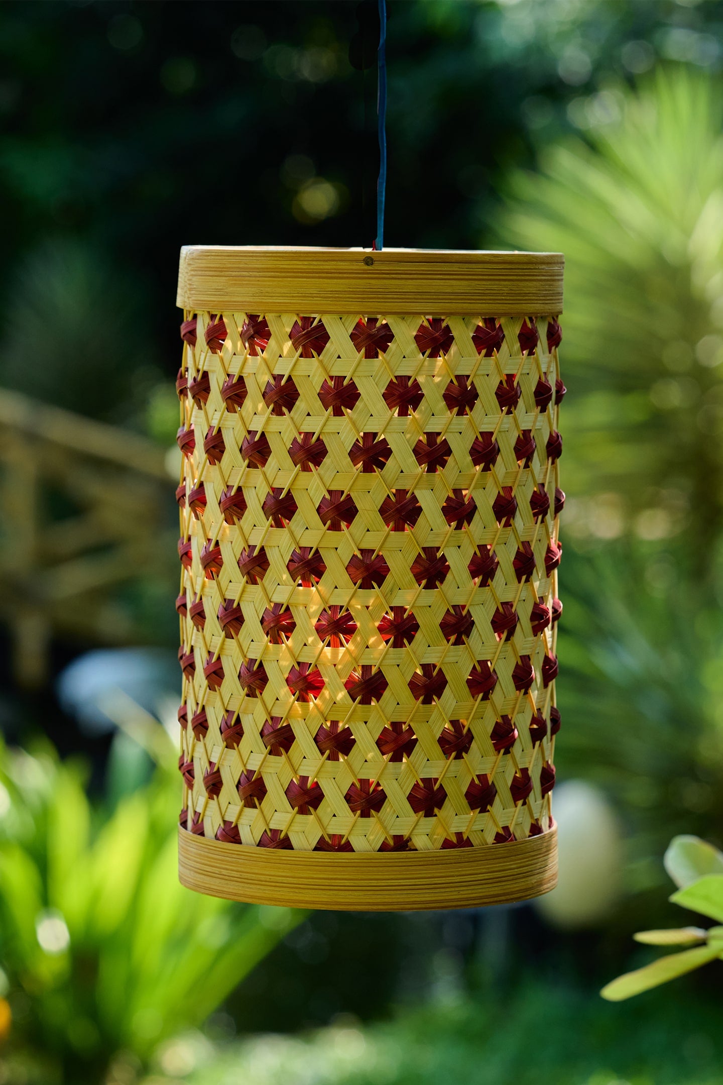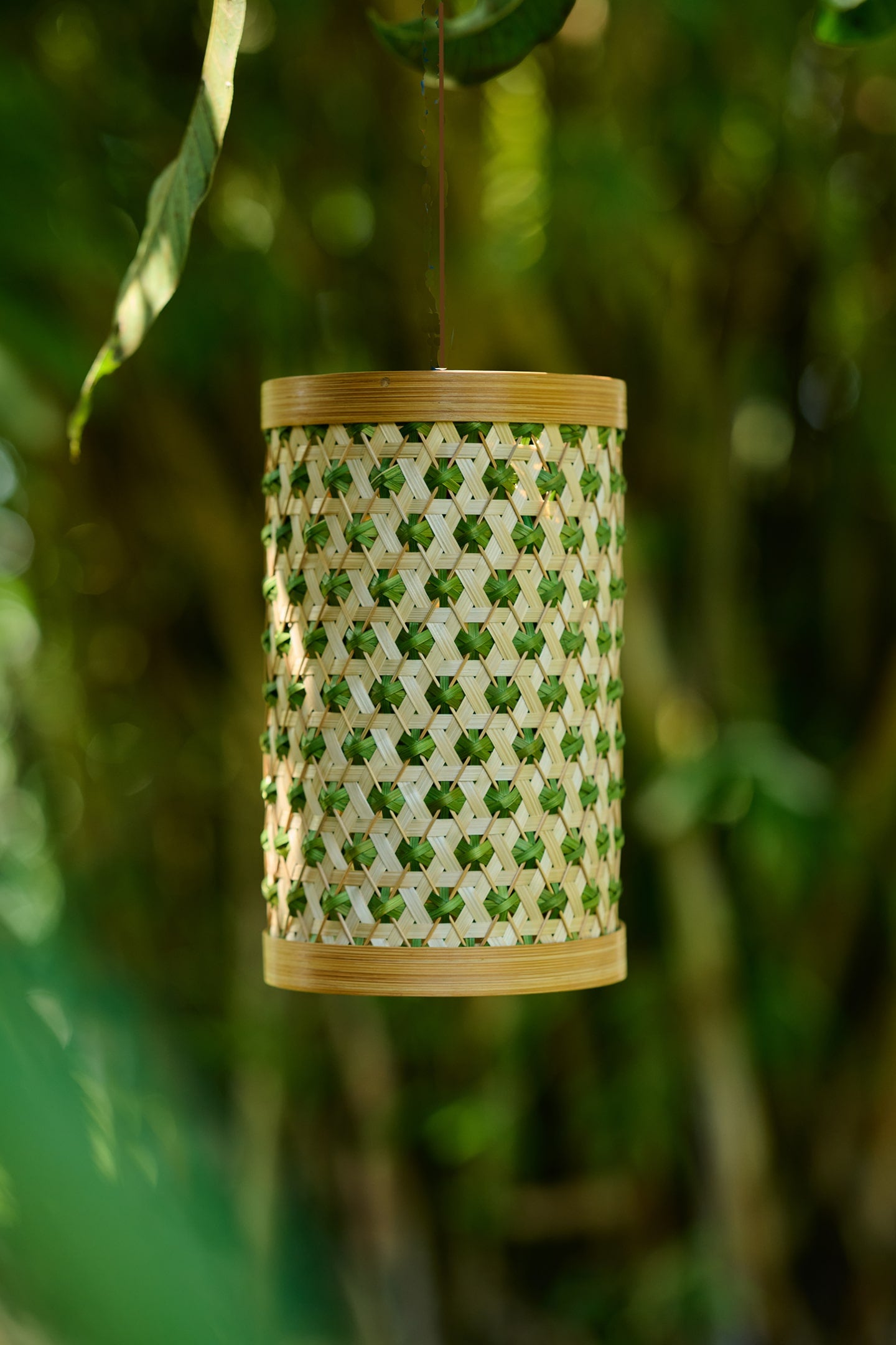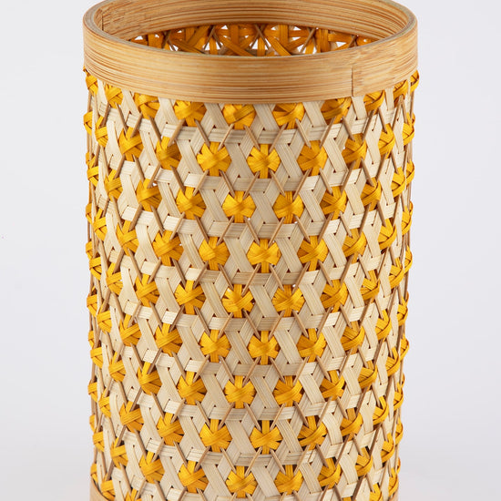 This lampshade is handcrafted by our master bamboo weaver from Wayanad, Kerala, who likes to play with colours. Crafted by drawing inspiration from pineapple fruit, which is associated with good luck in many cultures, this decorative piece is designed to light up outdoor or indoor spaces.